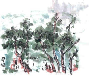 この森の絵を見て、少しでも涼しさを感じたいと思います。